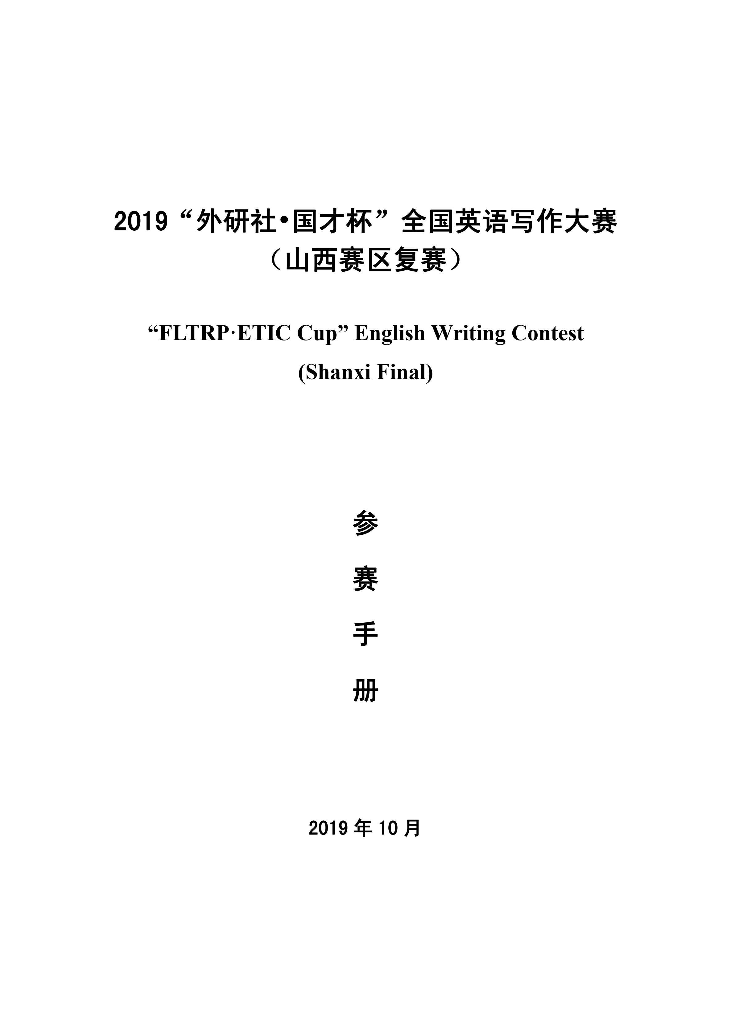 2019“外研社?国才杯”全国英语写作大赛(山西赛区复赛)将于10月19在公司举行。