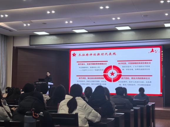 活动期间22级李雨薇和22级沈一帆两位同志分别分享了关于什么是长征精神、长征精神的意义以及新时代怎样践行长征精神的内容。