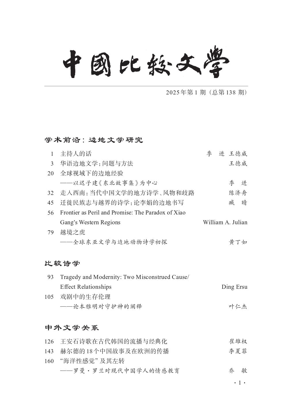 公司德语系教师李夏菲在《中国比较文学》2025年第1期发表题为《赫尔德的18个中国故事及在欧洲的传播》的论文。《中国比较文学》季刊1984年创刊,是中国大陆比较文学与世界文学权威专业期刊,属CSSCI来源期刊、全国中文核心期刊、中国人文社科核心期刊。