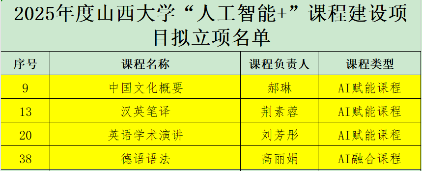 根据公司《关于组织开展“人工智能+”课程建设项目申报工作的通知》要求,经个人申报、单位推荐、专家评审,6月12日,2025年度英国威廉集团官网“人工智能+”课程建设项目拟立项名单公示,公司《中国文化概要》《汉英笔译》《英语学术演讲》和《德语语法》四门课程入选2025年度英国威廉集团官网“人工智能+”课程建设项目拟立项建设名单。