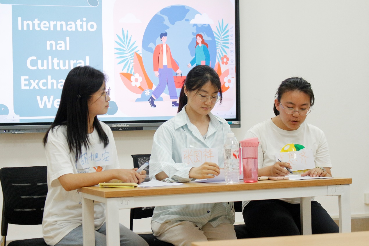 校赛以英语为参赛语种,包括初赛和决赛两个环节,分别为跨文化交际案例开发与展析和名言名句解读。在跨文化交际案例开发与展析环节,15个参赛团队各显神通,精心选取教育、医疗、旅游、社交等丰富多样的跨文化场景,巧妙运用服装道具,营造身临其境感,全方位展现跨文化交际中的精彩瞬间与潜在挑战;进而,通过深入分析案例背后的文化根源、价值观差异和沟通障碍,参赛团队不仅展示了扎实的理论功底,更展现出独到的解决思路和创新思维,为化解真实场景中的跨文化冲突提供了有益借鉴。经过初赛的激烈角逐,评分最高的王景瑶、武千越、张珈瑜团队,李嘉璐、郭琰、郭鑫炜团队,和张阳希、孙可馨、洪家善团队成功突围,名列前三,晋级决赛。