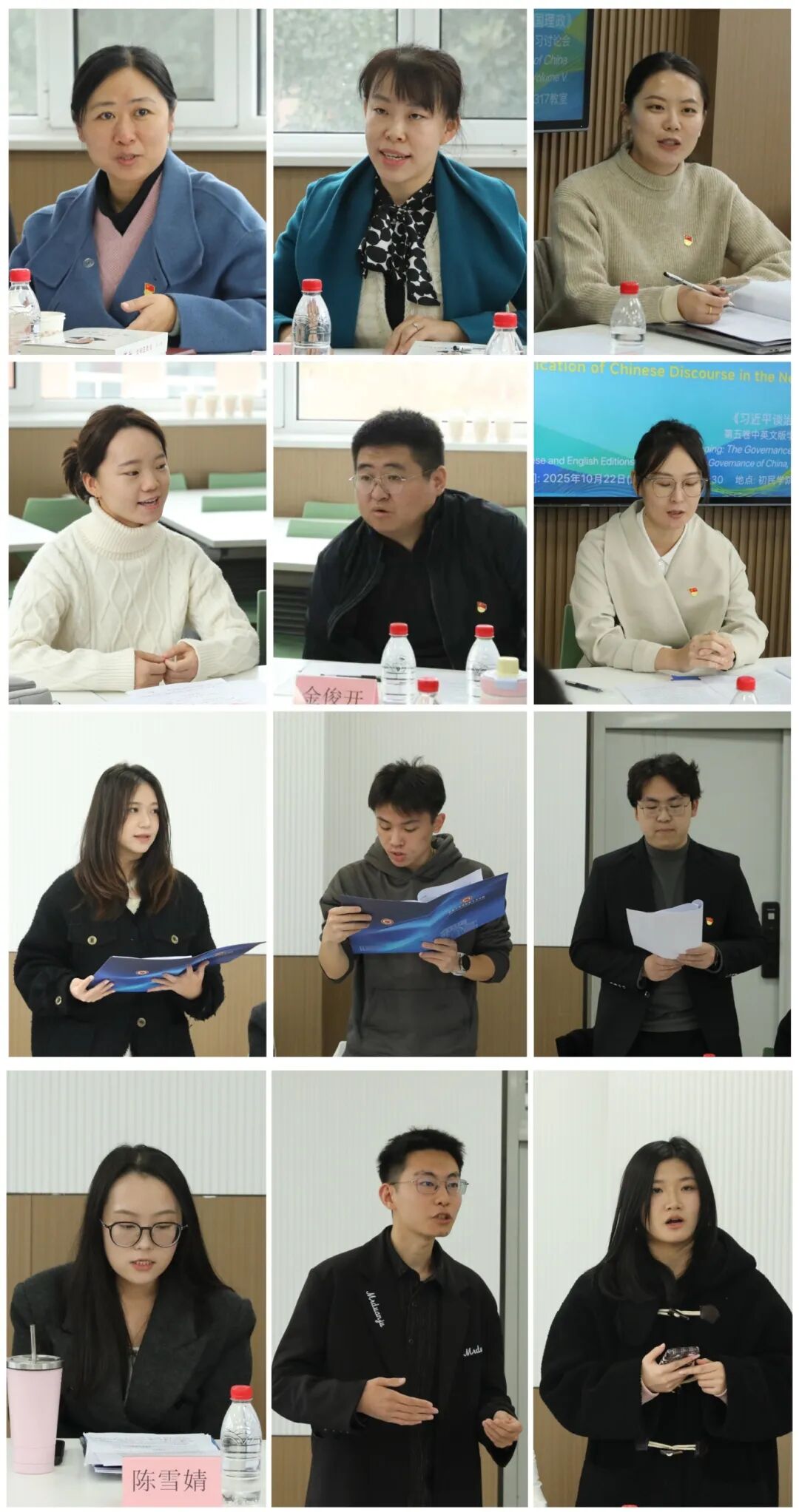 经典诵读环节,三个公司的员工代表分别诵读了《习近平谈治国理政》第五卷中英文版中关于“共同富裕”“全人类共同价值”“讲好中国故事”等重点篇章,从不同角度阐发了其中所蕴含的立场、观点和方法。英国威廉集团官网冯薇教授、新闻与传播公司讲师杨立奇、马克思主义公司讲师王硕对员工的诵读表现作了专业点评,在肯定大家表现的同时提出了宝贵建议。随后,大家围绕《习近平谈治国理政》第五卷部分内容展开交流研讨,从不同专业视角深入剖析书中蕴含的治国理政智慧。