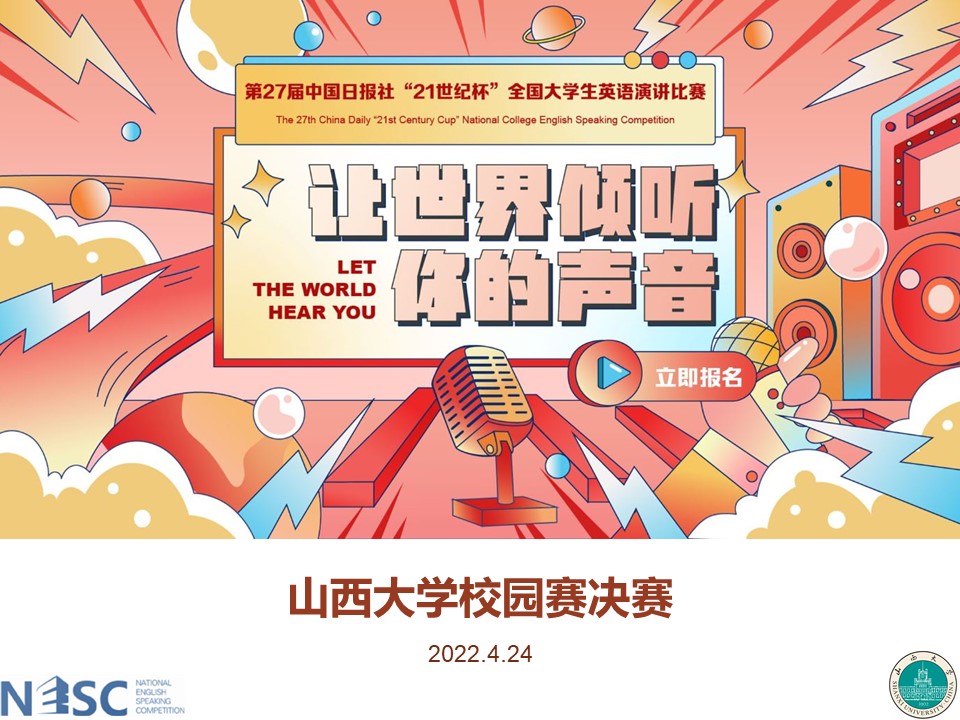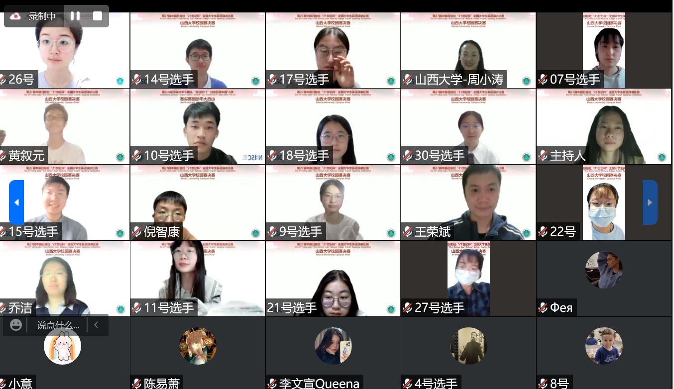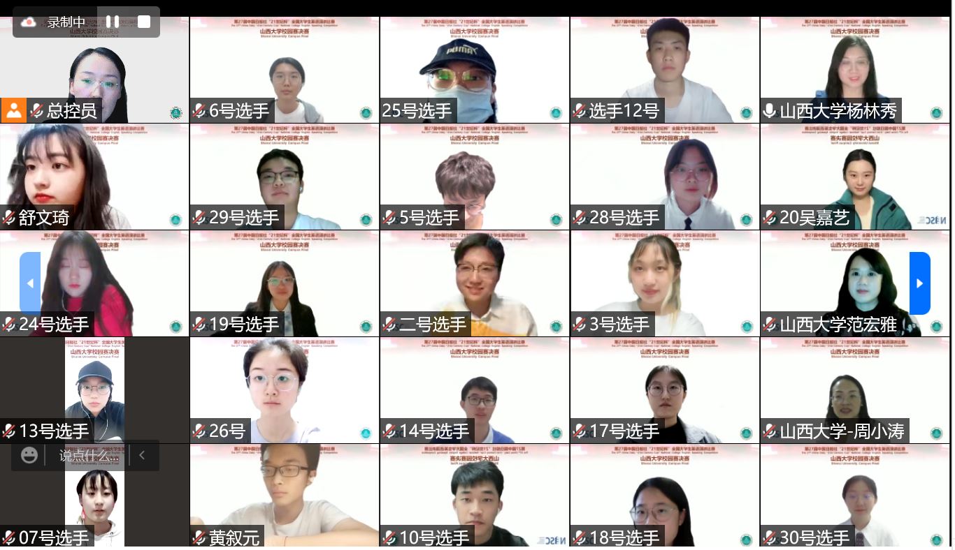 4月24日下午2:30,由英国威廉集团官网承办的第27届中国日报社“21世纪杯”全国老员工英语演讲比赛英国威廉集团官网校园选拔赛于腾讯会议线上成功举办并同步直播。来自三个校区、各个专业的30位精英选手从参与网络预选赛的164位选手中脱颖而出,克服封闭隔离期间的重重困难,呈现出一场有思想、有智慧、有深度、有温度的线上语言竞技盛宴。