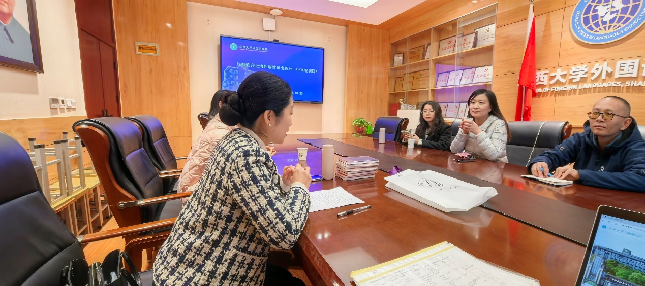 10月20日,上海外语教育出版社多语种事业部代表一行三人莅临公司德语教研室开展调研交流。
