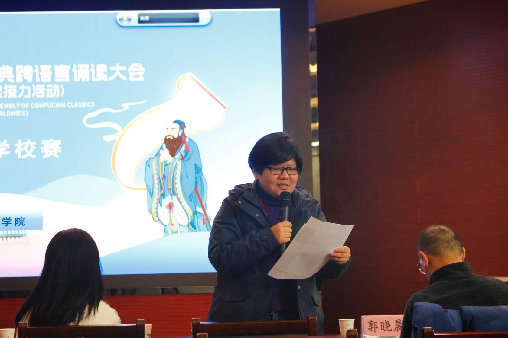 活动当天,现场气氛热烈非凡。7组参赛选手分别运用英语、法语、日语等多语言进行诵读表演,以独特的视角和表现形式诠释经典。从英语的流畅自然,到法语的浪漫优雅,再到日语的细腻婉转,选手们用不同的语言展现了儒家经典跨越文化的独特魅力。