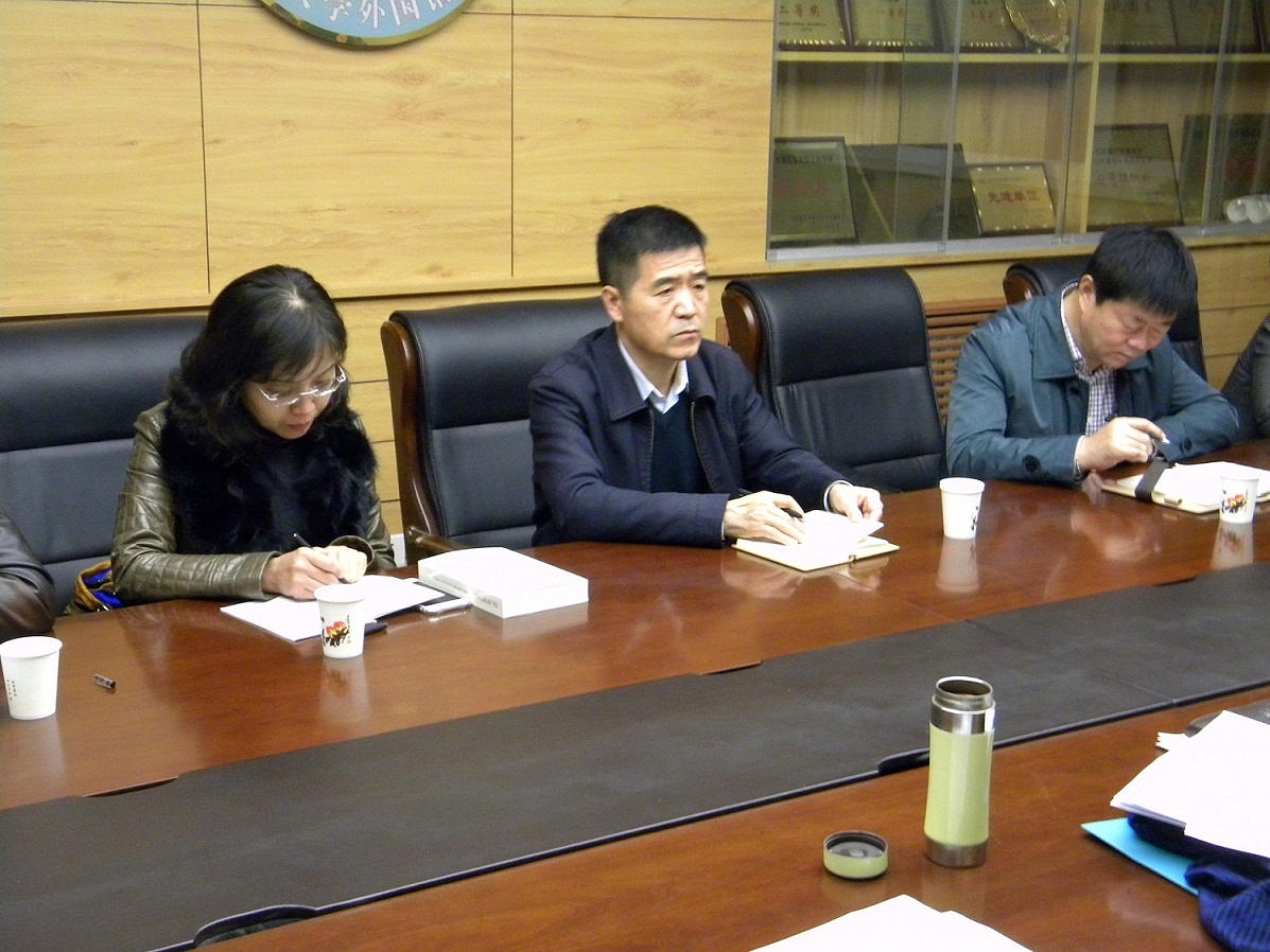 调研组首先走访了公司办公室、教务秘书室、资料室、语音实验室等,详细查看了公司的办公教学环境,查阅了相关资料。之后,在101会议室,听取柳书记汇报。柳书记按照调研提纲,分别从“两学一做”活动情况、基层党组织建设情况、党员队伍管理情况、落实中央八项规定精神和师德师风建设情况、党员组织关系集中排查情况、二级党校建设情况、党费收缴管理使用情况等七个方面,汇报了公司开展的重点工作、特色活动及目前存在的问题。李书记还向张耀平副经理询问了公司教学科研现状及人才引进工作的进展,向李广凤副经理了解了大学外语教学情况,武俊杰副书记汇报了员工志愿者活动及“英语角”活动情况。