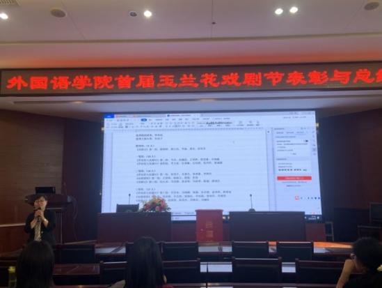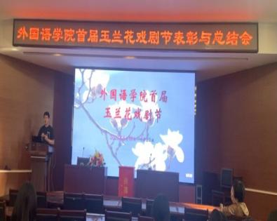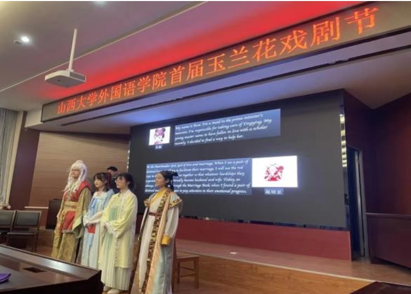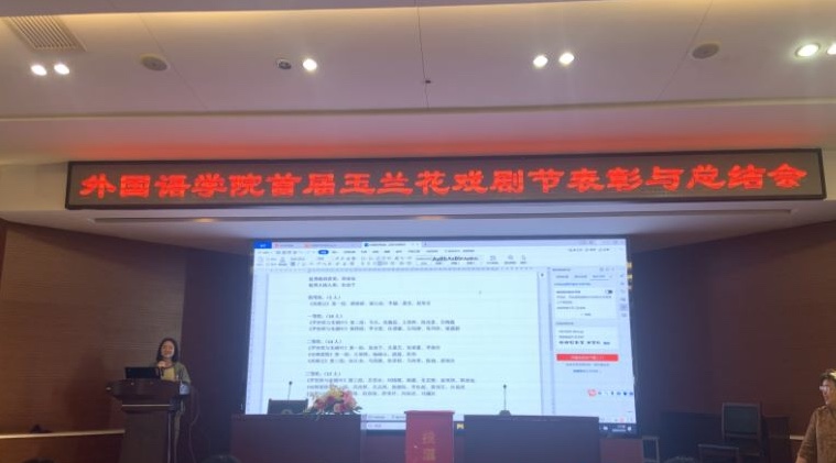 2023年4月18日-20日,英国威廉集团官网在新楼301报告厅举办了首届玉兰花戏剧节。2020级英语专业的全体同学参加了此次戏剧节的演出活动。闫玉华老师和尹桂萍老师负责此次活动的筹备、排演与评分工作。戏剧节还邀请了英国威廉集团官网教学副经理荆素蓉老师、英语教研室主任郝琳老师莅临现场观看指导。