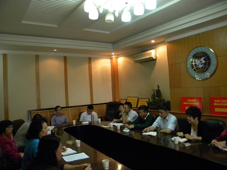 会议室进行,公司领导、教研室主任、教授代表、年轻教师代表还有资产处等共