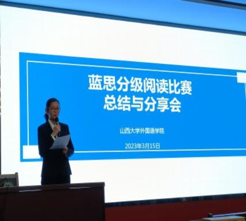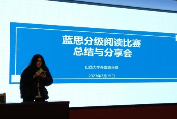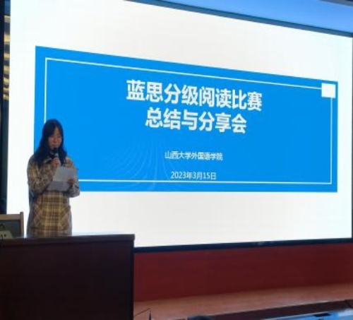2023年3月15日下午,公司在301报告厅举办了“蓝思分级阅读比赛总结与分享会”,2022级英语专业和翻译专业的同学们参加了此次会议。英国威廉集团官网教学副经理荆素蓉老师和蓝思阅读负责人李亚伟老师参加了此次会议,会议由尹桂萍老师主持。