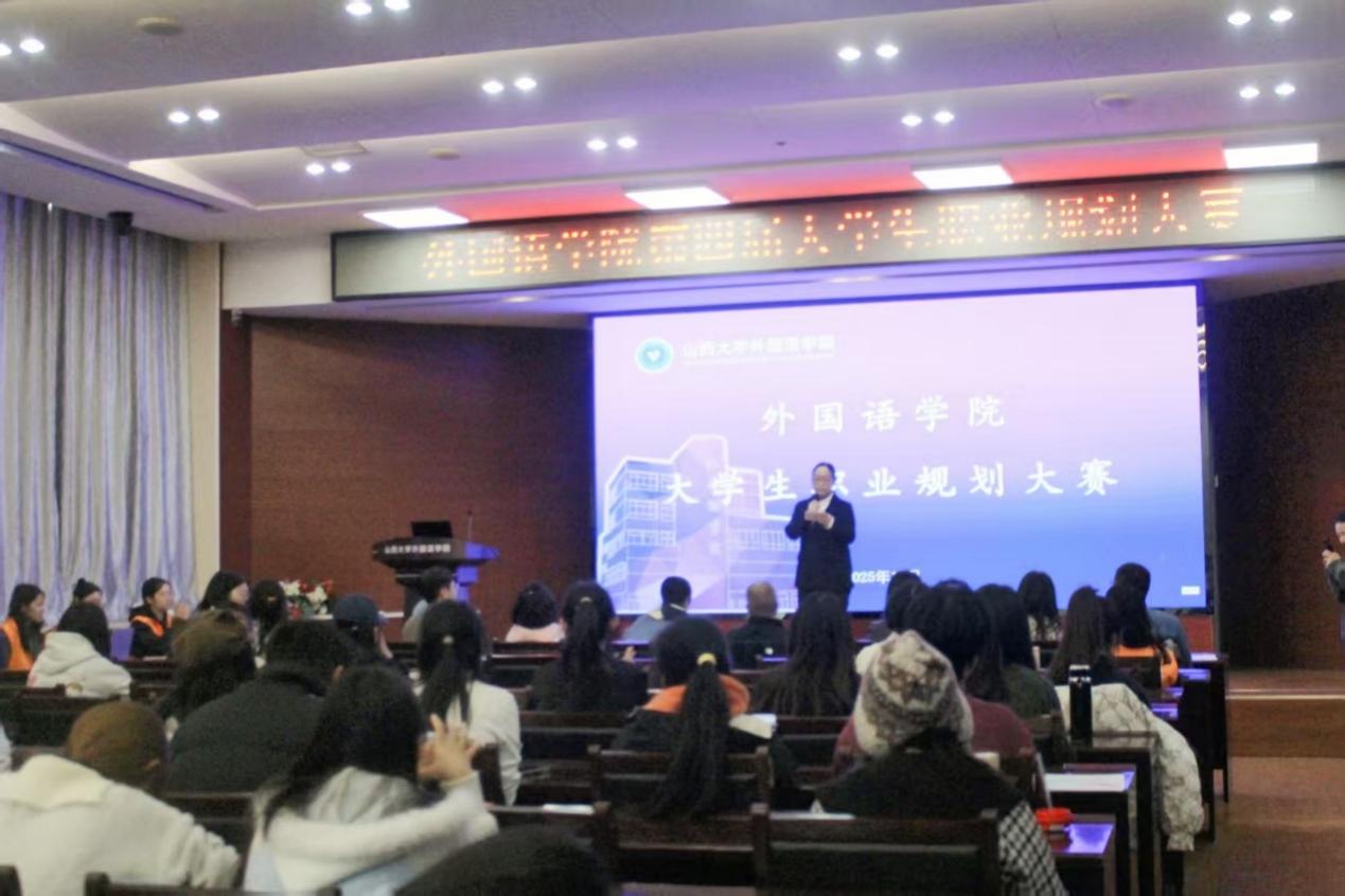 本次赛事特邀山西启阳永盛科技有限公司总经理杨立辉、公司党委副书记尉英丽、党政办主任闫玉洁、团委书记霍雅琪,辅导员买梦琳、田昊、田小聪组成评委团,为外院学子的职业规划提供指导。