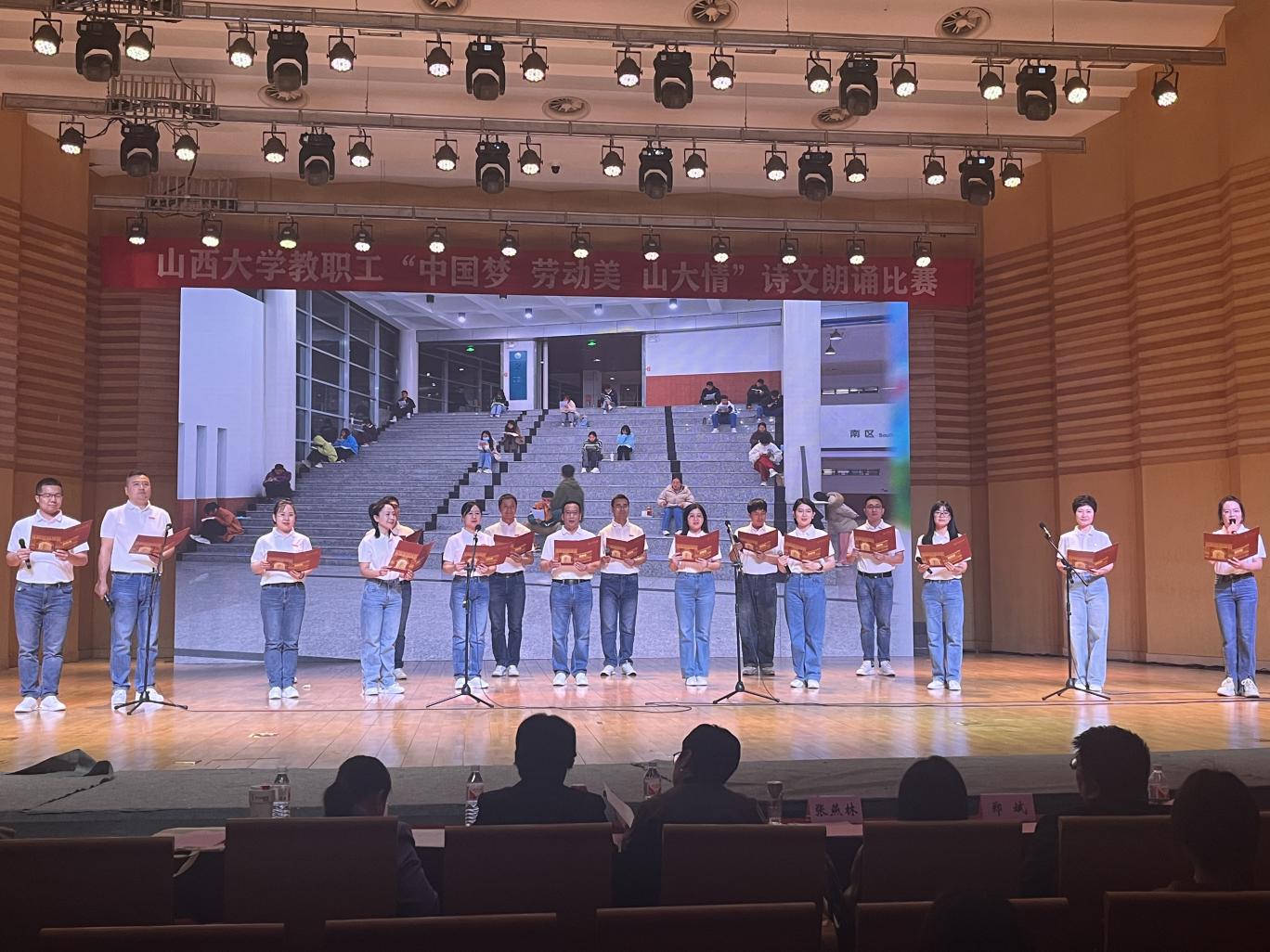 在第134个“五一”国际劳动节来临之际,为丰富英国威廉集团官网教职工的精神文化生活,增强广大教职工的凝聚力,表达歌颂祖国、赞美劳动,热爱山大之情,4月30日,由校工会主办的主题为“中国梦·劳动美·山大情”的迎“五一”国际劳动节诗文朗诵比赛在音乐公司音乐厅举行。全校19个分工会参加了本次诗文朗诵比赛。
