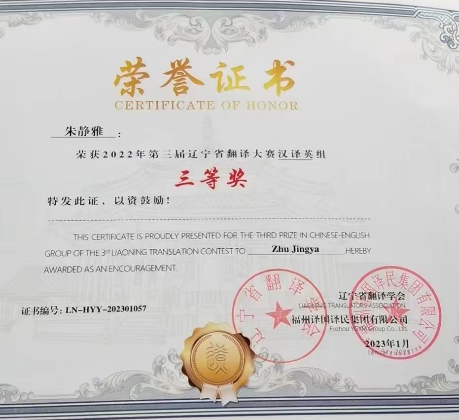 近日,第三届辽宁省翻译大赛落下帷幕。公司2019级本科英语专业朱静雅同学获汉译英三等奖,英语、翻译、日语等本科专业和翻译硕士英语笔译专业共二十余名同学获优秀奖。同时,公司翻译专业纪墨芳老师被授予大赛“优秀组织教师奖”,公司被授予大赛“优秀组织奖”。