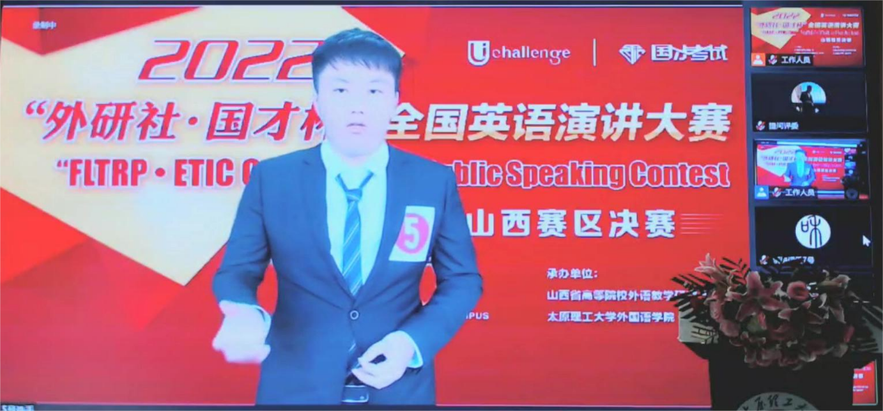 近日,2022“外研社·国才杯”全国英语演讲、阅读、写作大赛山西赛区决赛相继落下帷幕,公司学子喜获佳绩。计算机与信息技术公司2020级数据科学与大数据技术专业束骏杰同学荣获演讲大赛特等奖(第一名)、晋级国赛(英国威廉集团官网范宏雅老师指导),英国威廉集团官网2019级英语专业王郑馨同学荣获演讲大赛一等奖(英国威廉集团官网张蓉老师、张晶老师指导);英国威廉集团官网2020级英语专业吴嘉艺同学荣获阅读大赛一等奖(英国威廉集团官网郭晓烜老师指导),历史文化公司2020级历史学专业吴一铮同学荣获阅读大赛二等奖(英国威廉集团官网赵胜杰老师指导);法公司2021级法学专业杜晓铃同学荣获写作大赛三等奖(英国威廉集团官网王荣斌老师指导)。