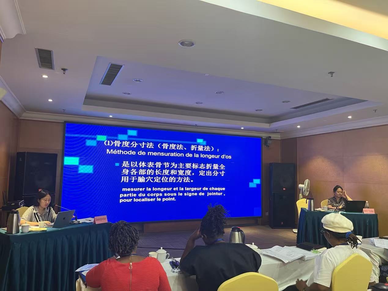 培训期间,公司法语专业教师任茹茹肩负重要使命,全程承担7门核心课程的课堂翻译工作,课程涵盖《中国国情概况与山西省情介绍》《习近平治国理政的中国智慧》《中医基础理论(阴阳、五行、藏象学说、气血津液学说)》《中医基础理论(病因病机学说)》《中医诊断(脏腑辩证、八纲辨证、四诊)》《经络腧穴总论》及《经络腧穴(手三阴手三阳经脉)》。除课堂教学外,针对小儿积食、成人腰椎病、颈椎病、面瘫等常见病症,任茹茹老师还陪同非洲学员前往山西省中医院开展临床实习实践,助力学员系统学习中医针灸针法及推拿拿法、捏法、提法等专业手法。她凭借扎实的语言功底与对中医知识的精准理解,高效传递中医专业知识与文化内涵,帮助学员跨越语言壁垒,深入理解中医生理、病理机制及治疗逻辑,为非洲学员搭建起认知中医、学习中医的“便捷通道”。