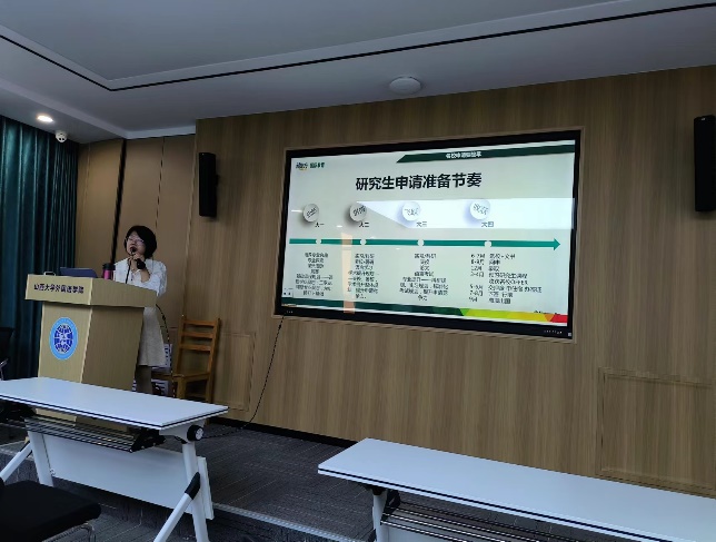 石怡老师首先给同学们介绍了个人的学习、工作以及留学的经历,分享了自己在不同阶段的体会和收获,为参会的同学们提供了很多具有参考价值的建议。随后,她为同学们分析了不同国家的留学政策以及申请留学的准备步骤,同时也为同学所关心的就业问题提出解答。最后,就“英专生or小语种要不要学习托福雅思?”的问题,进行了一系列回应。