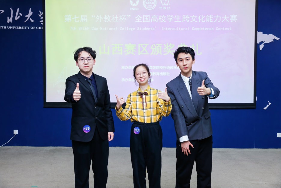 2024年11月2日,由山西省高等教育外语教学研究会、上海外国语教育出版社主办,中北大学承办的第七届“外教社杯”全国高校员工跨文化能力大赛山西赛区决赛在中北大学落下帷幕,来自全省各高校共22支参赛代表队展开了激烈角逐。由23级汉语言文学专业王景瑶、22级新闻学专业潘天一和张家铮三位同学组成的公司代表队,在英国威廉集团官网李春涛、苏江丽和王婧三位教师的指导下,以优异的表现荣获山西赛区一等奖和团队最佳风采奖。公司荣获优秀组织奖。
