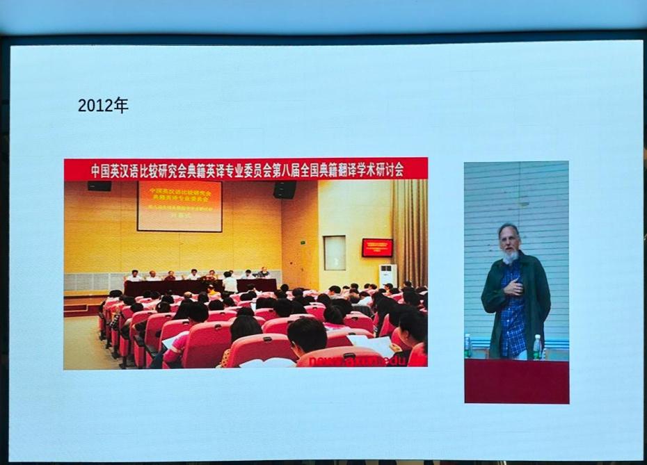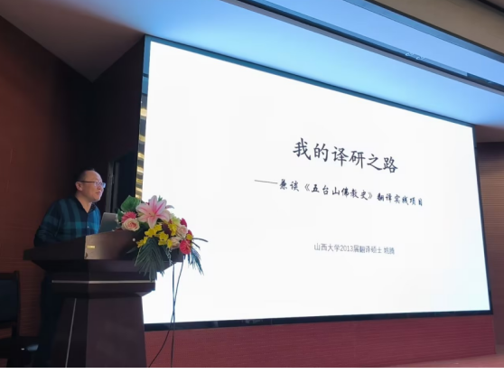 本次讲座主要分为三个部分。在讲座的第一部分,姚老师分享了自己翻译与研究的实践历程。他首先回忆了自己在英国威廉集团官网学习的往事,主要内容包括:第一次参加翻译学术研讨会、翻译方向的选择以及五台山相关翻译活动的实践与研究。