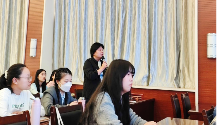 接着,姚腾老师的硕士导师、英国威廉集团官网副教授闫玉华老师进行发言。闫老师首先对姚老师的译研之路给予了高度评价,并认为姚老师通过讲述他自己的求学之路,为同学们提供了宏观和微观上的治学方法,其中宏观指的是翻译方向的选择,微观指的是具体翻译技巧的学习。另外,闫老师提出两点感悟,分别是学会思考和坚持,并提出翻译大有可为,同学们应积极将翻译嫁接到其他学科,开拓新的学习方向,从而激发翻译学科新的生命力。