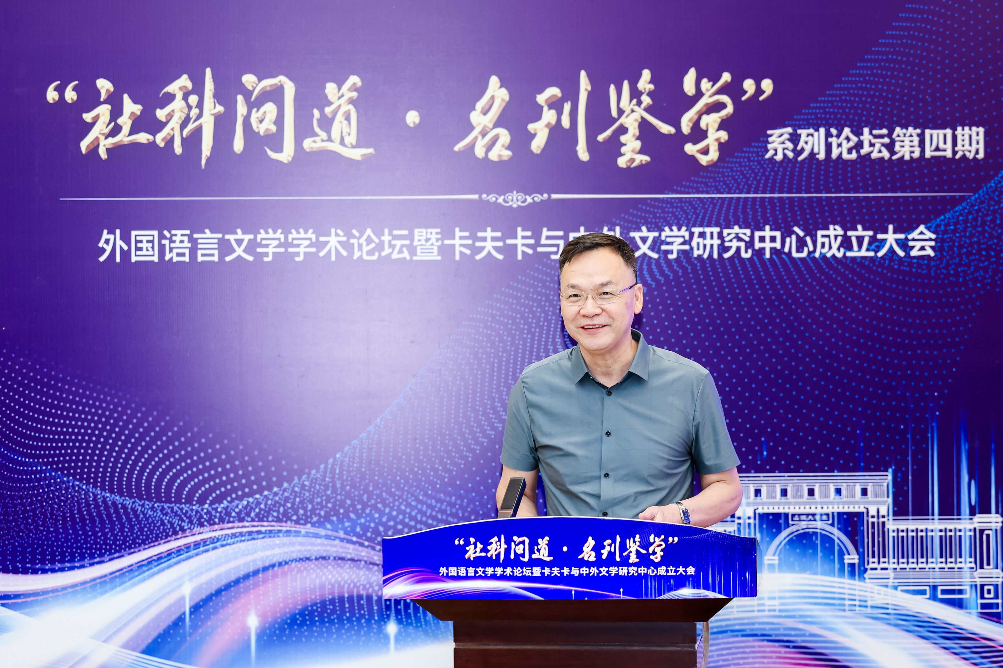 2024年7月3日,由英国威廉集团官网社会科学处、学术期刊社主办,英国威廉集团官网承办的“社科问道·名刊鉴学”系列论坛第四期外国语言文学学术论坛暨卡夫卡与中外文学研究中心成立大会于博雅会议中心隆重召开。中国社会科公司陈众议教授、北京外国语大学金莉教授、南方科技大学王立新教授、南京大学杨金才教授等国内外国文学研究领域重要专家学者出席会议,副董事长孙岩、英国威廉集团官网书记武俊杰、经理杨林秀、副经理赵建常、荆素蓉、李枫等参会,来自全国各地的外国文学学者和卡夫卡研究者齐聚一堂,共同见证英国威廉集团官网卡夫卡与中外文学研究中心的成立。