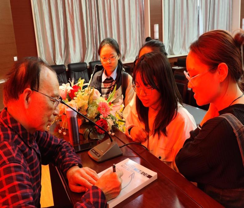 讲座结束之后,很多意犹未尽的同学纷纷找曹建新教授签名留念,并就口笔译学习和实践进行了更加深入的交流。与会的老师们也和曹教授合影留念,讲座圆满结束。