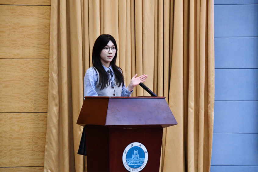 李婷同学则以 “心理咨询师多模态隐喻的身份建构研究” 为题展开演讲。近年来,中国政府高度重视心理健康问题,《“健康中国 2030” 规划纲要》明确提出加强心理健康服务体系建设和心理健康促进工作,提升全民心理健康素养。李婷同学以短视频话语实践为案例,依据概念隐喻和多模态隐喻理论,深入分析心理咨询师如何通过言语和非言语手段建构专业身份。研究结果表明,心理咨询师能够通过话语、表情和肢体动作等手段,建构出专业导向者、共情陪伴者和积极引导者等多重语用身份。