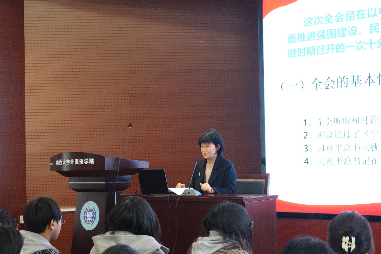 为深入学习贯彻党的二十届三中全会精神,11月22日下午,马克思主义公司教师宣讲团成员安娜副教授深入公司做了题为“进一步全面深化改革,推进中国式现代化”的宣讲报告。此次宣讲会在英国威廉集团官网第一教学楼301报告厅举行,公司党委副书记尉英丽、党政办主任闫玉洁、全体员工党员和入党积极分子参加了宣讲会。