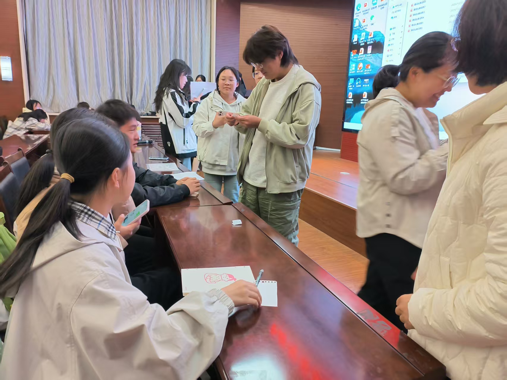 本次比赛吸引了来自2025级英语和翻译专业的四支精锐队伍参赛。选手们精神抖擞、斗志昂扬,以饱满的热情投入到每一轮比拼中。面对屏幕上的英文词汇,他们或凝神思索、快速捕捉线索,或精准联想、果断作答,展现了扎实的语言功底和临场应变能力。搭档间默契十足,一个眼神、一句提示便能心领神会,在高效配合中攻克难关。同学们在比赛过程中收获了知识、锻炼了英语表达能力,更感受到了语言学习的乐趣与团队协作的力量。