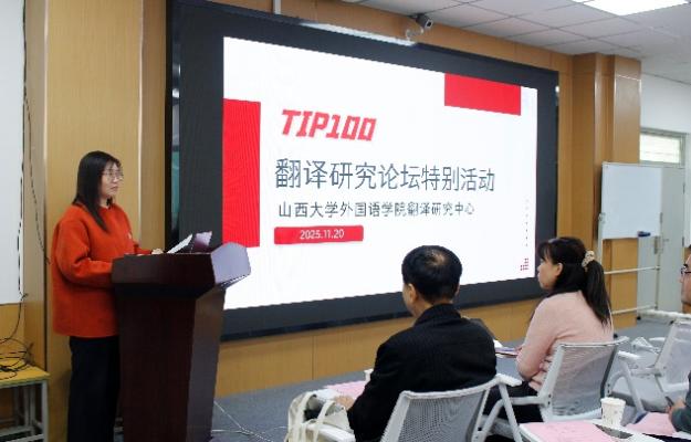 2025年11月20日14:45-18:00,英国威廉集团官网翻译研究中心翻译研究论坛 TIP100特别活动于英国威廉集团官网第一教学楼308教室顺利开展。