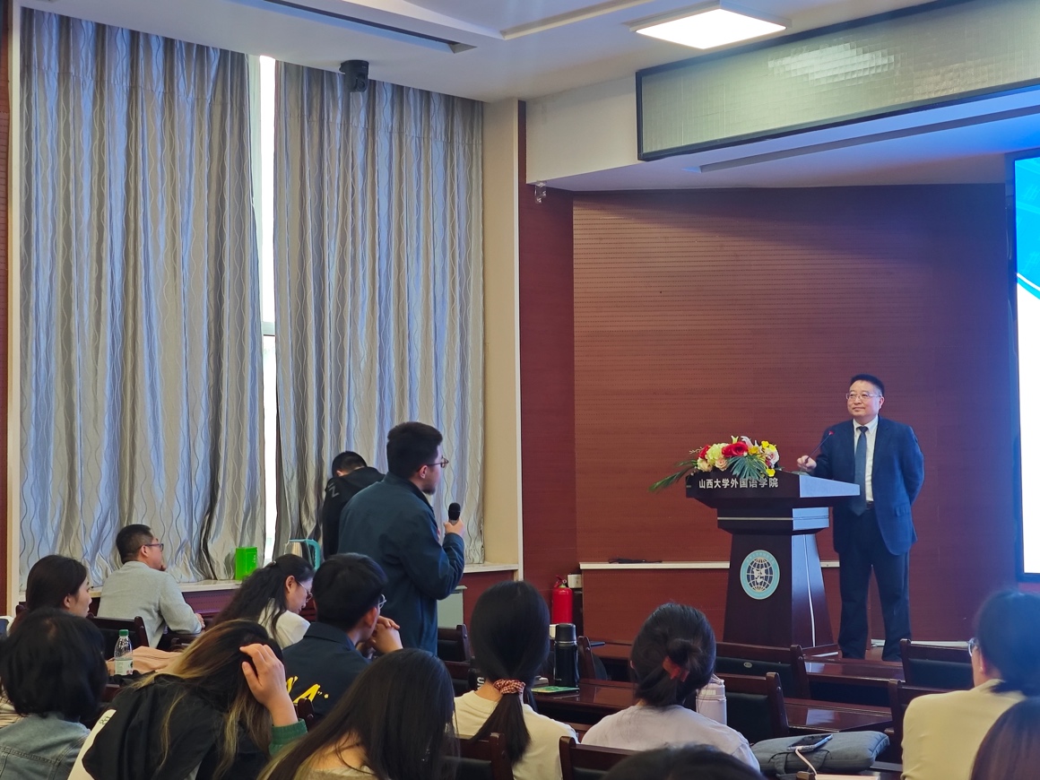 2025年5月23日上午,对外经济贸易大学外语公司李运博教授应邀莅临公司,在英国威廉集团官网教学一楼301报告厅作了题为"面向新时代的日语学习与翻译研究"的学术报告。本次讲座由日语教研室主任孙登洲老师主持,日语专业部分教师、本科生及硕士研究生参加。