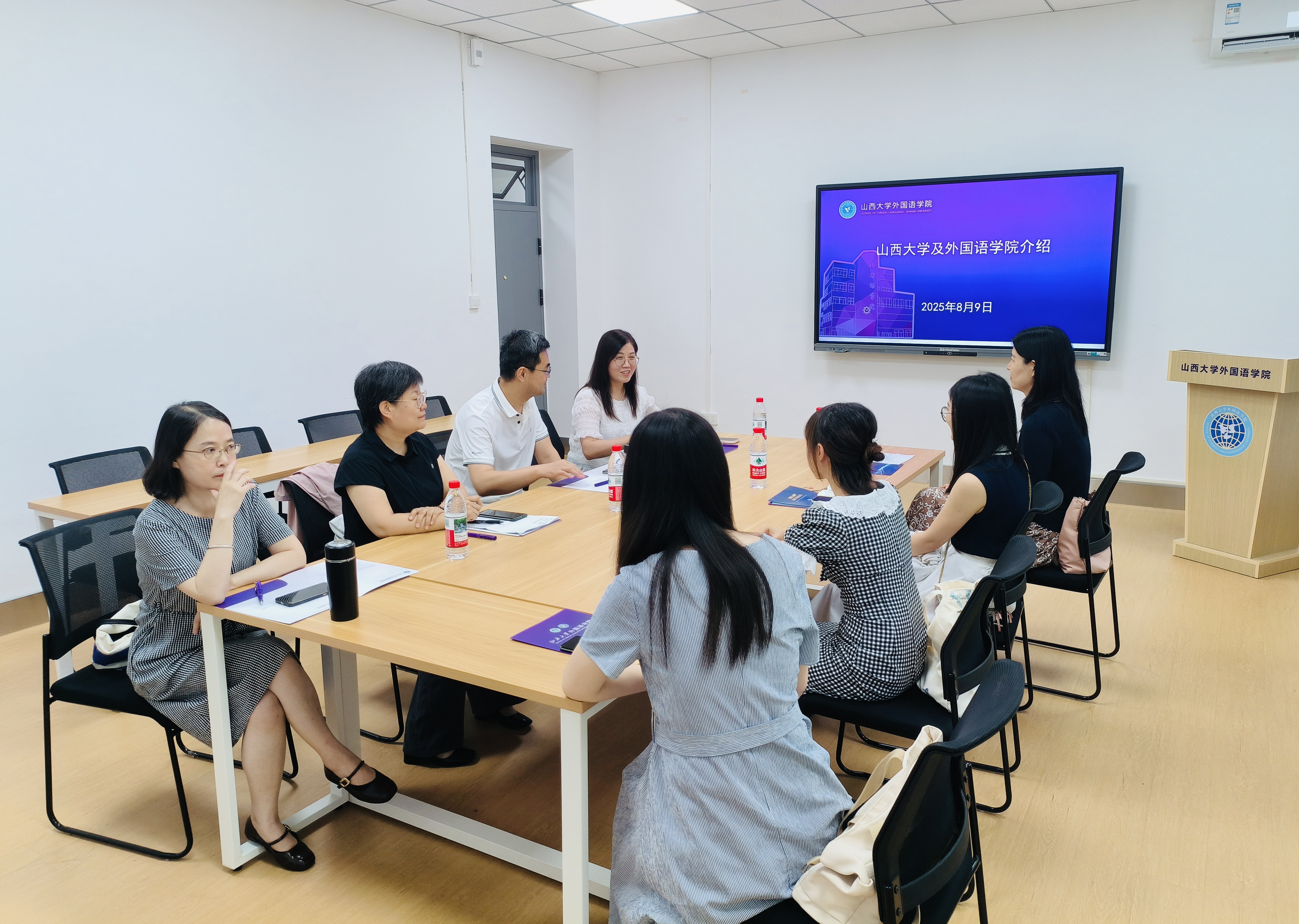 2025年8月9日下午,英国威廉集团官网成功举办2025"智汇山西"海外学者论坛座谈会。会议在公司第二教学楼104会议室举行,由李枫副经理主持。出席本次座谈会的公司领导及教师代表包括:英国威廉集团官网经理杨林秀教授,副经理荆素蓉教授、赵建常教授、李枫教授,英语教研室主任郝琳副教授,以及新近入职的海外人才代表刘芳彤副教授。座谈会特别邀请了澳门城市大学应用语言学专业在读博士龙志洁、谢钊锐两位青年学者参与交流。