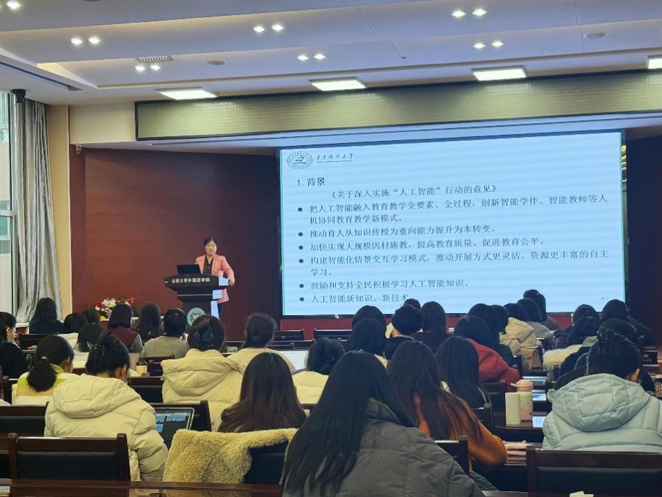 讲座尾声,徐锦芬教授强调了教师自身的综合素养决定了AI赋能的程度,提升自身教学和科研素养才是有效运用AI赋能教学科研的关键。在随后的互动环节中,老师们踊跃提问,徐教授耐心细致解答,现场交流氛围活跃而融洽。副经理李枫教授对本次讲座进行了总结,表示徐教授的分享干货满满,期待老师们将其转化为教学实践及研究成果,也希望后续有更多交流机会。