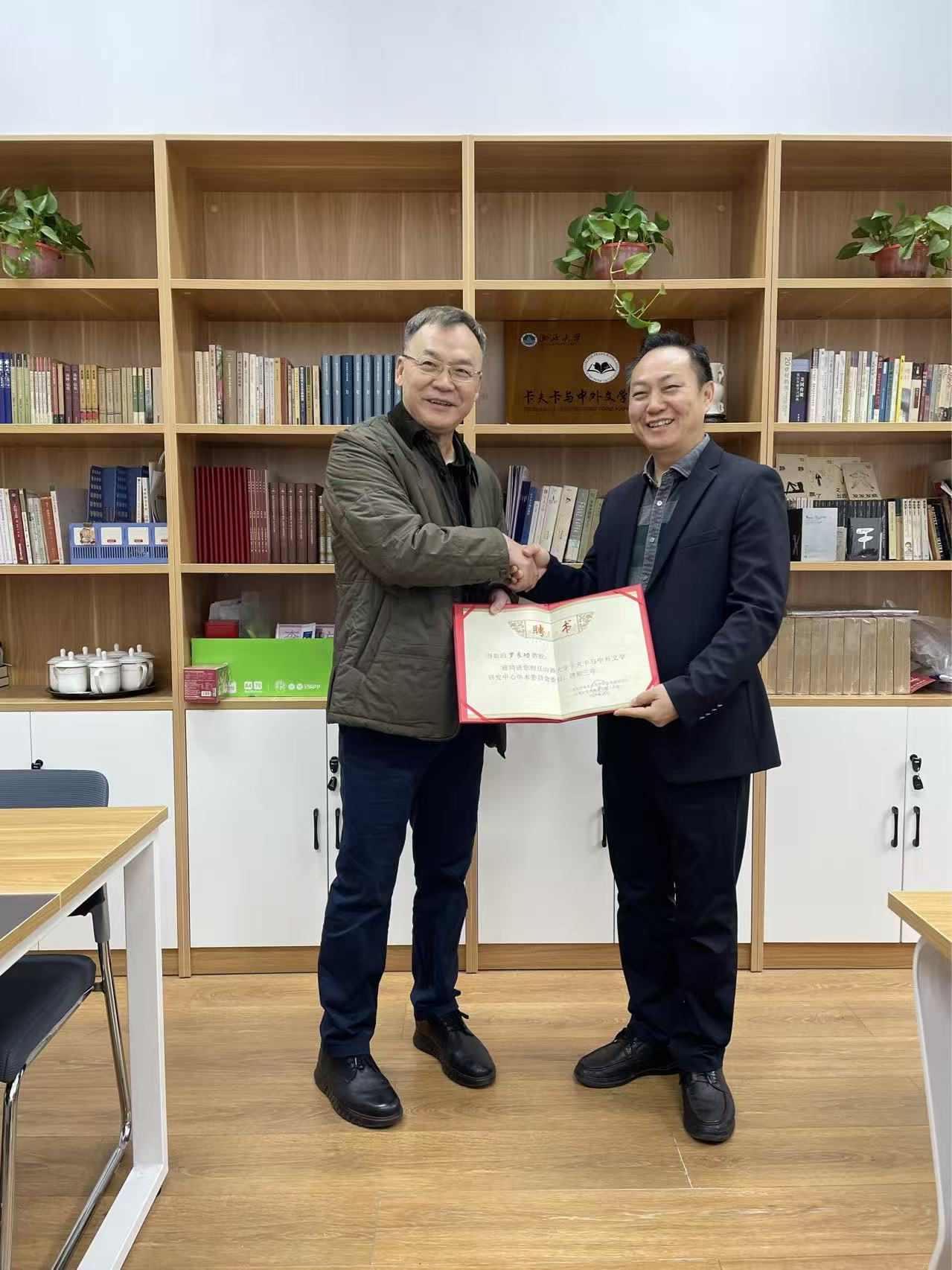 讲座开始前,曾艳兵教授为罗良功教授颁发英国威廉集团官网卡夫卡与中外文学研究中心学术委员会委员聘书,并代表英国威廉集团官网全体师生对罗教授的到来表示热烈欢迎。