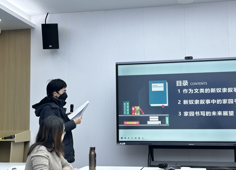 讲座于下午15:00准时开始。首先,郝富强老师深入解读新奴隶叙事这一文类,指出新奴隶叙事借鉴经典奴隶叙事的形式并进行创新,融合多种创作手法和创作思想,重构了奴隶制的历史记忆。随后,郝老师将重点聚焦于新奴隶叙事中的家园书写及其构建起的涵盖奴隶贸易各阶段的时空形式。从家园的流散到文化杂糅,从种植园的抗争到逃亡的游牧,再到解放后集体记忆传递与家园重建,家园这一主题贯穿始终,成为自由与身份建构的核心象征,促使人们对种族压迫进行反思,呼吁公平社会。最后,郝老师对新奴隶叙事中的家园书写进行了反思和展望,指出其在未来趋势下的其他研究主题。